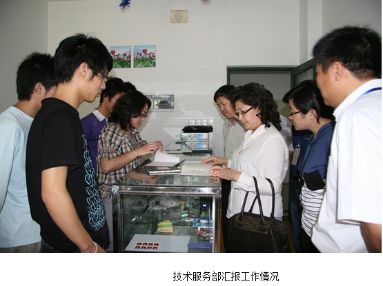 领导们认真听取了技术服务部从筹建至开业以来的工作汇报。杨院长对技术实践服务部取得的工作成绩给予了充分的肯定,同时就目前技术服务部在工作中遇到的困难给予了大力的支持与关心,并对如何在今后的工作中进一步规范操作,提出了宝贵的建议。师生们受到了极大的鼓舞,表示今后将更加努力工作。