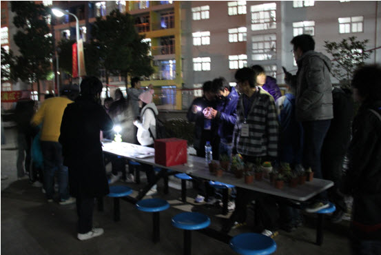 12月16日傍晚4点30分,我们可爱的学生会干事们在招呼着路边走过的人们。他们在吆喝些什么呢?随我们的记者走近些去听听吧。
