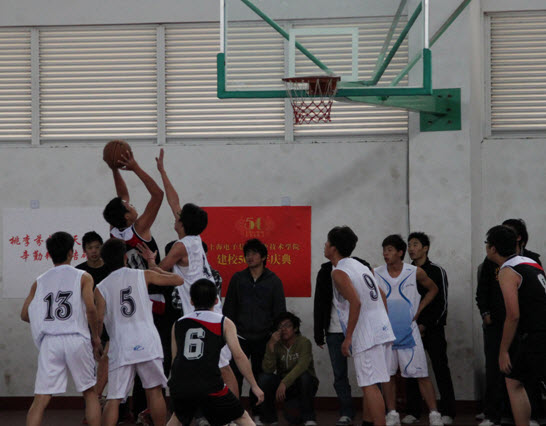大洋彼岸,NBA2010到2011赛季刚刚烽烟四起、重燃战火。借此机会,为了加强系与系间学生的友谊,丰富学院课余生活,提高学生的综合素质和进行体育锻炼的积极性,增强团队精神和集体凝聚力,展现大学生积极向上的风貌,由我系学生会承办的2010年“飞翔杯”篮球赛于2010年1月15日中午11:30分准时拉开了帷幕。