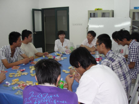 在会上,王老师以自己的亲身经历给大家讲述了自己的经验,告诉大家在生活学习中态度一定要积极,学有所成,有自己的一技之长;多参加社会实践,在社会实践中理解、消化自己所学的的东西;王老师还告诉大家要锻炼自己的社会能力,去适应我们即将踏入的社会。同学们也分享里了各自的暑假生活,有些同学参加了暑期兼职,有些同学参加专业技能培训,大家积极交流自己在暑期工作学习的经历与心得。王老师和潘老师还为同学带来了月饼和一些食品,作为中秋礼物。大家都开心的说说笑笑,度过了别样的中秋节。