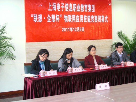 2011年12月3日,上海电子信息职业教育集团“联想·企想杯”物联网应用技能竞赛在上海电子信息职业技术学院顺利落下帷幕。上海电子信息职业教育集团副理事长、上海电子信息职业技术学院党委书记、院长杨秀英女士、上海市教委教研室计算机教研员陈丽娟女士、上海企想信息技术有限公司总经理束遵国先生、联想(上海)分公司姚晨华经理、上海电子信息职业教育集团秘书长顾滨女士等诸多领导及专家出席了闭幕式。本次比赛由上海电子信息职业教育集团主办,由上海电子信息职业技术学院计算机应用系与上海电子信息职教集团计算机专业建设指导委员会承办,比赛得到协办单位联想(上海)有限公司和上海企想信息技术有限公司的大力支持。