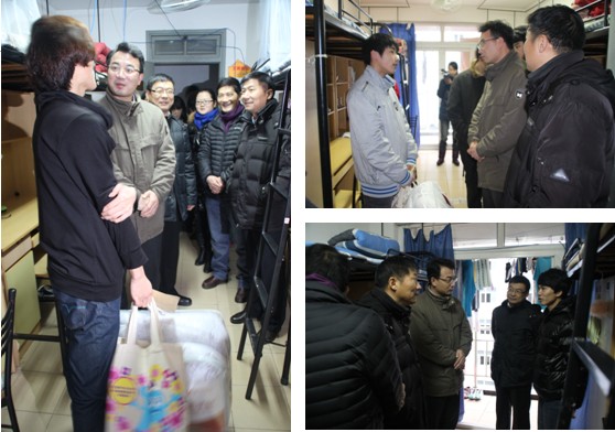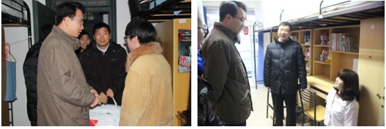 2013年1月8日,我院党委副书记顾剑锋、党办主任曾本聪、院团委副书记蔡林洁和书记助理宋立峰在计算机应用系主任胡国胜和党支部书记单贵的陪同下来到学生宿舍慰问学生,及时为贫困新生发送过冬棉被、衣物、食品等御寒物品。