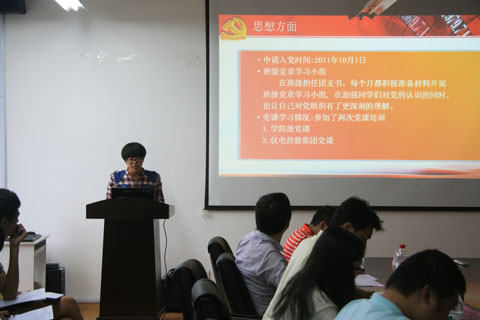 9月6日,“计算机应用系学生党员拟发展对象答辩会”在H1-313会议室举行,14名学生入党积极分子参加了答辩,会议由谌明举同志主持。组织发展对象答辩会改变了传统的支委会(或支委扩大会)讨论确定学生党员发展对象的传统模式,扩大了民主参与范围,答辩评委由支委、教师党员(包括专任教师和辅导员)、学生党员、普通学生代表等34名多类别人员组成,这样的评委构成增加了专任教师对学生的评价和发言权、增加了学生对学生的评价(包括普通学生对入党积极分子的评价),同时也让其他学生更加清晰组织对一个学生党员的要求,明确了努力的方向,增强了党组织的凝聚力和吸引力。