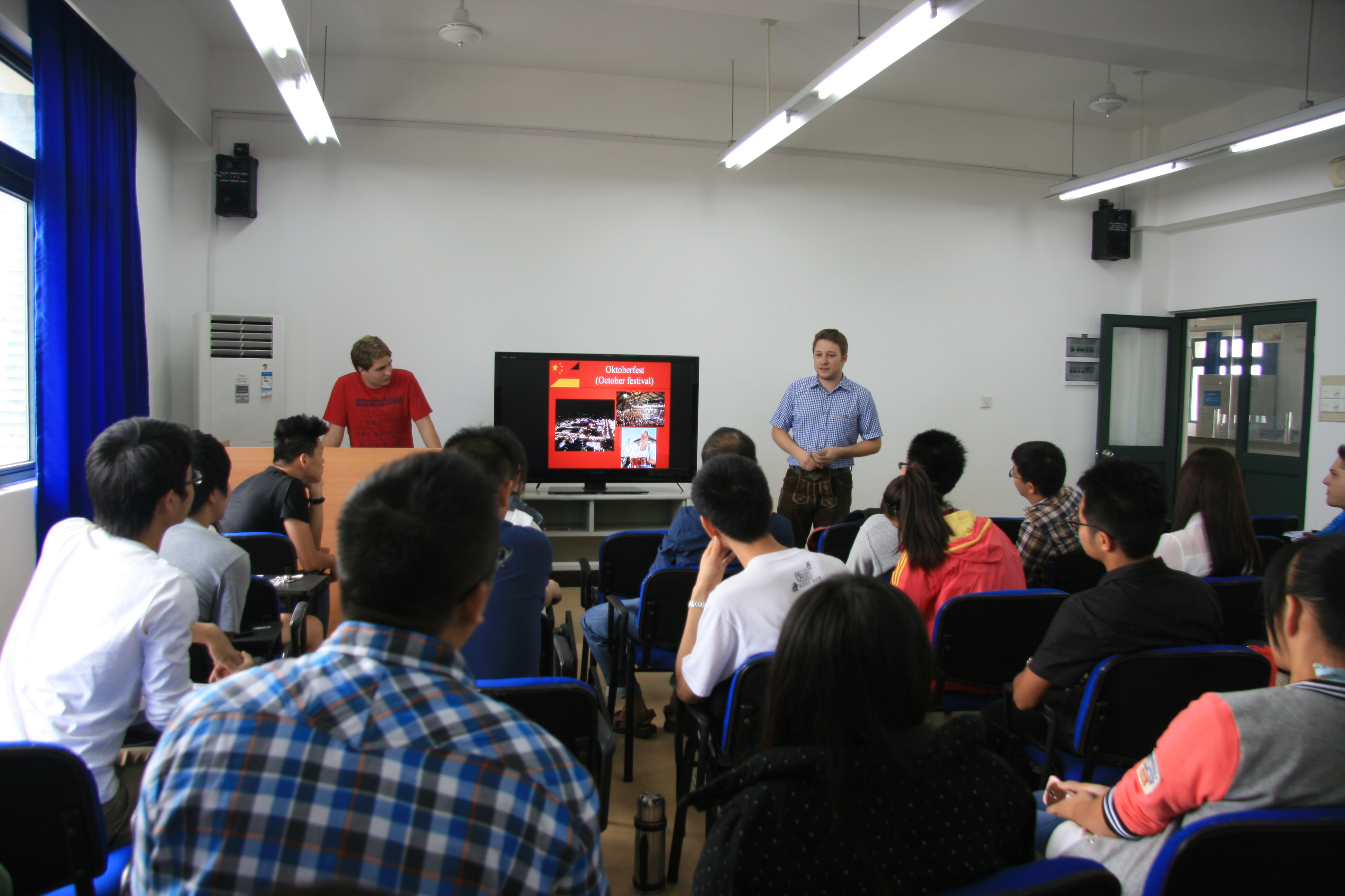 为了开阔我系学生的国际视野,为学生搭建国际交流学习与互动的平台,2013年9月27日下午13:00—14:15,我系在H1-401举行了一场中德学生互动交流会。