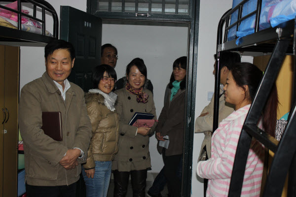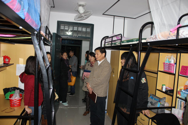 座谈会后,徐副院长还带领大家一同深入我系学生寝室,实地查看学生寝室情况,分别到2号楼1楼、7号楼4楼、12号楼1楼、2楼等二十余间寝室进行了走访,调研组对实地查看和走访情况表示满意,对部分学生积极营造温馨文明的寝室环境表示肯定,对需要改进和加强的地方给予了很好的指导。