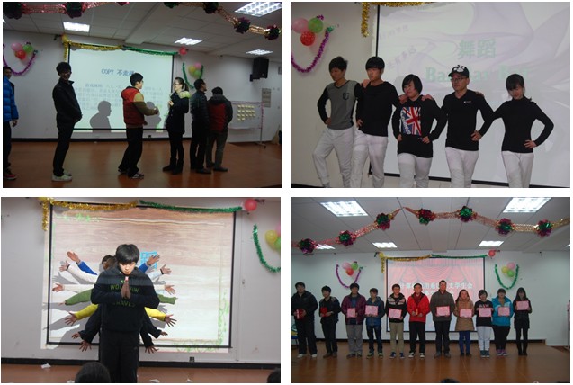 交流大会于12月27日下午5点在H2402教室正式开始。首先,主席为本次大会致辞,其后,计算机应用系团总支学生会各部门开始了他们精彩的演出,台下时而响起富有节奏感的节拍,时而爆出热烈的掌声,时而传来呼叫声和爽朗笑声,愉悦的氛围笼罩了整场交流会。在演出期间,还穿插了许多由秘书处精心准备的刺激而又好玩的游戏,中德学院的干部以及辅导员们也热情参与到了游戏当中,每个游戏都留下了许多值得留念的精彩瞬间,部长们和部员们之间默契的配合以及机灵的头脑让游戏顿时变得饱满、充实。平日里的严肃与谨慎在此时此刻早已跑得无影无踪,留下的只有欢声和笑语。交流大会上,团总支对一学期的干事工作进行考评,表彰了14位优秀干事。