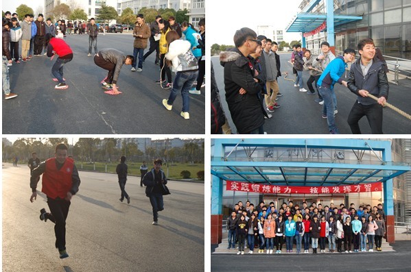 下午四点一刻,H1教学楼一楼大厅聚集了各部门的干事们,也包括计算机应用系团总支学生会主席,副主席以及各位部长。首先大家进行了简单的签到,为了使这次活动公平,接着采用了抽签的方式来进行分组,共分六组。趣味运动会项目共有六项,分别是跳绳、搭桥过河、两人三足、接力跑、拔河等。首先进行的是跳绳项目,分为单脚跳,双脚跳和双飞三项,每一小组派出三人分别参与三个项目的竞赛,预备期间,好久都不曾拾起绳子的同学们显得有些生疏,但是经过短暂准备之后,依然展现出了各家本领,让比赛变得格外激烈、精彩。完成比赛的队伍便进行了下一项活动的角逐。最后压轴的当属拔河活动,卯足劲儿的同学们在比赛中个个涨的面红耳赤,气盖山河的气势瞬间笼罩在了这片场地上,各种姿势的压绳也变成了一组组值得纪念的美好或欢笑镜头。