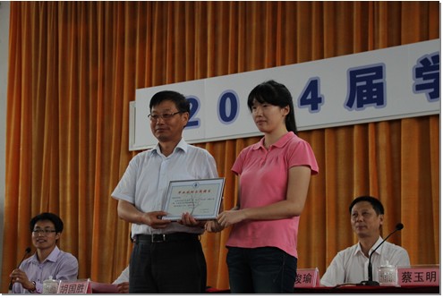 典礼上,2014届毕业生代表张洋同学向学校赠送纪念品(毕业林植树证书),学院副院长徐松鹤接受毕业生对母校的捐赠。副院长徐松鹤、工会主席周俊瑜、院长助理胡国胜三位领导依次给每位毕业生颁发了毕业证书并合影留念。