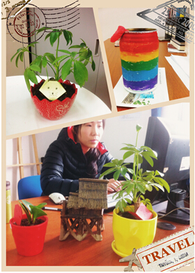 3月5日,计算机应用系团总支志愿者组成“学雷锋,爱寝室”环保小组,前往各楼层、寝室收集废旧花盆、易拉罐和矿泉水瓶,并对一些可再次利用的废旧花盆及易拉罐进行清洗、加工、美化。3月7日,志愿者们邀请宣传部绘画能手,利用废旧易拉罐进行DIY创意设计。经过一双双巧手雕琢,废旧物品在同学们的手中变身成七彩笔筒、对联装饰、橡皮泥点缀,让人爱不释手。随后,志愿者们精心挑选绿色植物,小心翼翼的移植盆栽。废旧花盆华丽变身为新鲜的植物盆栽,志愿者们巧手创意,变废为宝。