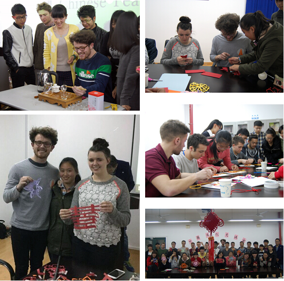 为进一步加强中英学生互动、增进友谊,计算机应用系举办了中英学生跨国文化交流活动。3月24日晚6点,活动在J-313开展。“茶韵幽香”、“编织友谊”、“剪出精彩”等各环节的活动无不吸引了英国巴市城市学院学生一行10人的热烈欢迎与积极参与。