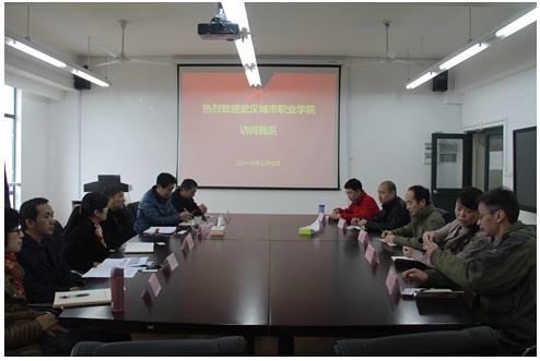 3月7日下午1:00, 武汉城市职业学院电子工程学院吴丰盛院长、肖静副院长、计算机网络教研室主任王世刚、计算机应用教研室主任吴强、数字媒体技术教研室胡文鹏一行五人到我系交流访问,我系胡国胜主任、谌明举书记、周巧婷副主任、邱洋、鲁家皓、李小俊老师参加。
