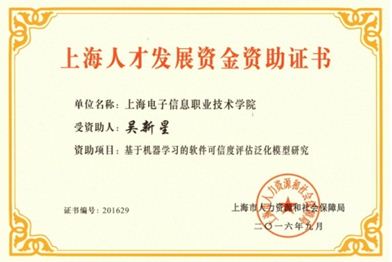 近日,根据《上海市人才发展资金管理办法》(沪人社专发〔2014〕14号)和《2016年度上海市人才发展资金资助受理通知(沪〔2016〕137号》文件精神,经个人申请,学院选拔推荐和市人力资源和社会保障局审核等程序,我院计算机应用系吴新星老师获上海市人才发展资金资助。