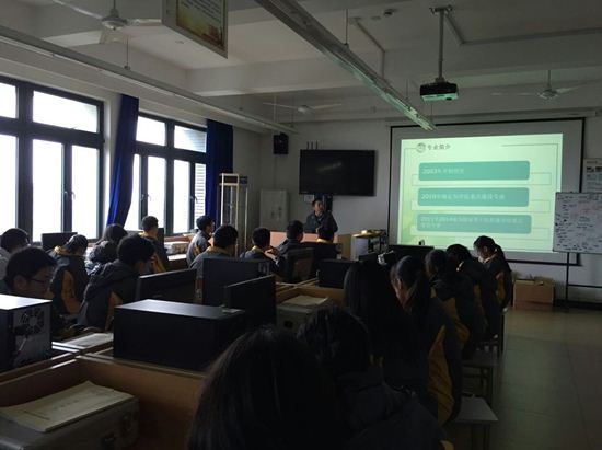 结束参观后,由我系计算机网络技术专业负责人邱洋老师为来访学生做了主题报告,详细介绍了计算机网络技术专业(物联网方向)的各项情况,并与学生做了深入交流。