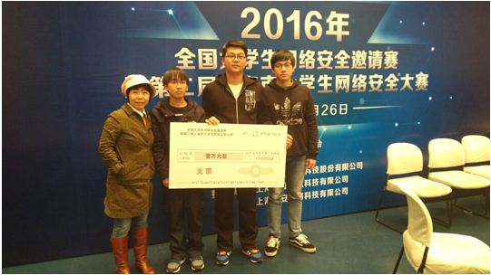 3Years团队三名学生均为学生网络信息安全工作室成员,他们在决赛中荣获特等奖和自身的努力密不可分,同时也证明了我院计算机应用系信息安全与管理专业与上海豌豆信息技术有限公司校企合作学生工作室的创新培养模式是成功的教育探索,对促进学生的实践能力提高大有裨益。