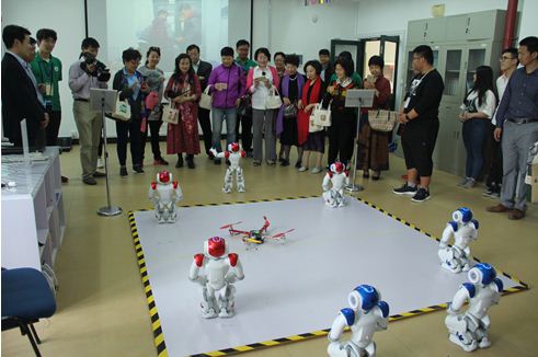 在参观中,部分女企业家与学生展开了亲切而细致的交谈,主要询问了工作室学生平时上课以及在工作室实践的时间分配等,并重点观赏了机器人、飞行器表演。来访者纷纷肯定了学生的创新意识和能力,并对同学们提出了殷切希望。