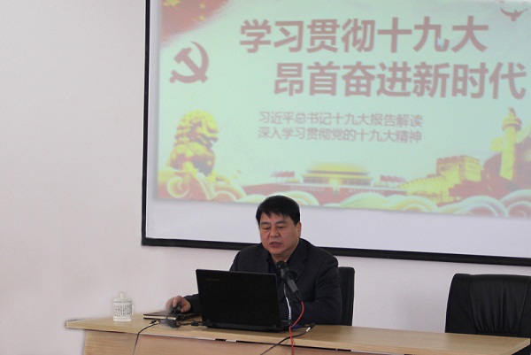12月11日下午,学习贯彻党的十九大精神宣讲报告会在我院J313举行,学校十九大精神宣讲团成员、党委书记田钦应邀为我院全体教职员工作“学习贯彻十九大,昂首奋进新时代”专题报告。