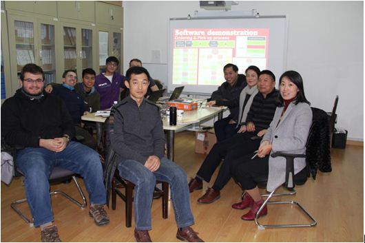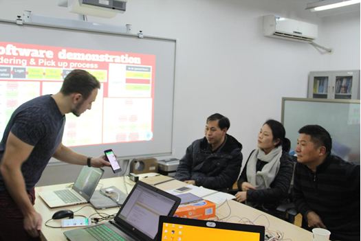 德国留学生就其在我校期间开展的研究项目进行了汇报,主要汇报了项目团队的组建、项目已经取得的进展、未来的完善计划等。该项目是关于用餐者网上自助订餐、自助取餐的应用程序开发,德国留学生利用手机终端向胡院长等教师进行了演示,胡院长等人对这一成果给于了肯定和赞扬,同时提出了下一步可以完善的一些建议。