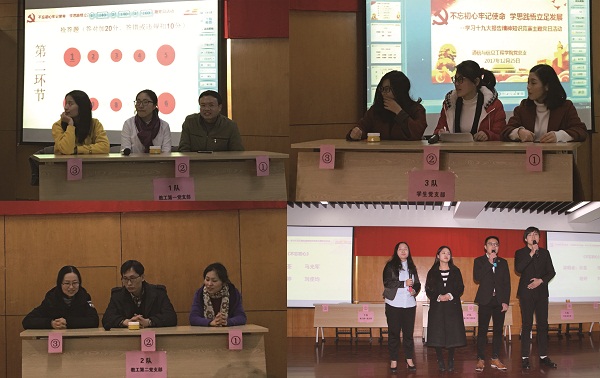12月25日下午,我院党总支“不忘初心牢记使命学思践悟立足发展——学习贯彻党的十九大精神知识竞赛”主题党日活动在I-401多功能阶梯教室举行。校党委组织部相关老师、各二级单位党总支书记、党支部书记、组织员、我院全体党员及教工代表百余人共同参加了活动。活动由党总支办公室胡月玲老师主持。