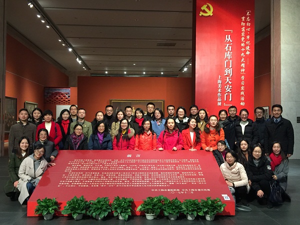 1月19日下午,我院党总支组织全体党员参观“从石库门到天安门”上海美术作品展,进行了一堂生动的现场党性教育课。