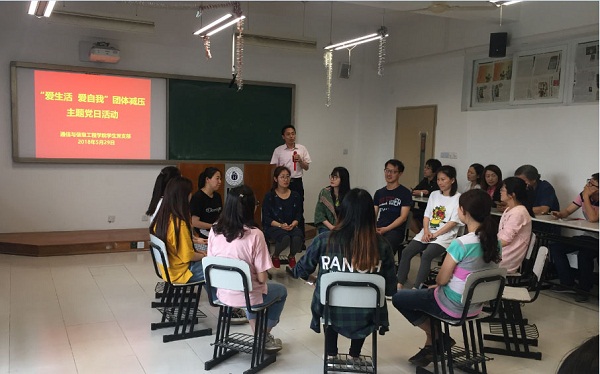 为帮助党员教师理清自己的压力源,以集体智慧解决自身困惑,缓解心理压力,以更好的心态和风貌投入工作中,5月29日下午,我院学生党支部在H109组织开展了“爱生活、爱自我”团体解压主题党日活动。各二级单位党总支书记、党支部书记、组织员以及我院党员出席本次活动。我院党总支书记陈林河对各二级单位党总支与会老师到场观摩指导表示欢迎。
