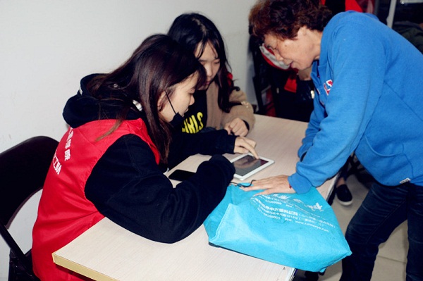 活动当天,队员们怀着激动与忐忑的心情乘车前往居民区,一路上都讨论着一会儿可能遇到的技术问题。到了目的地,队员们受到了热烈欢迎,身上的背包还没来得及放下,就被等待已久的老年人围了上来。整个活动过程中,队员们始终本着“微笑接待,耐心、全力解决问题”的服务理念,帮助前来的老人。他们努力发挥自己的专业知识和技能,不管是年代久远的DVD播放器受损还是手机信号差、屏幕图标小看不清、卡顿等问题,队员们都尽最大努力一一帮助解决,让冒雨前来的老人们满意离开。