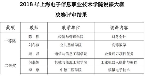 经过初步选拔,我院教师顾晶、周月红进入学校说课大赛决赛。决赛于2018年11月22日举行,在一众校外专家的评判下,我院教师顾晶、周月红分别荣获学校说课大赛二等奖和三等奖。