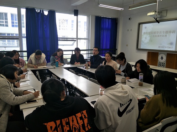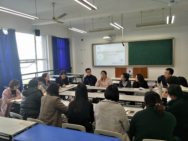 培训围绕“校园危机事件处理”为主题以座谈会的形式展开。姜涛在会上强调,校园危机事件应对是高校辅导员主要职责之一,辅导员工作“责任重大、使命光荣”,作为一名辅导员以及学生管理者,要定期组织开展学生安全教育,对校园危机事件进行初步处理,及时掌握危机事件信息并按程序上报,对危机事件进行有效预警并积极参与危机事件后期应对及总结研究分析。