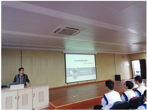结束参观后,由我院计算机网络专业朱冰老师为来访学生做了题为《Web网站架构演变》的主题报告,以简单的电商系统为例,详细介绍了网络工程核心技术的发展过程,同时介绍了计算机网络技术专业的基本情况,并与学生做了深入交流。