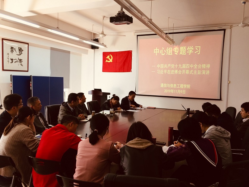 近日,学校党委制定了《学习宣传贯彻党的十九届四中全会精神工作方案》,全面系统部署学校学习十九届四中全会精神。我院党总支积极响应党委号召,把学习领会党的十九届四中全会精神,以及习近平总书记在第二届进博会开幕式上的重要讲话精神,作为“不忘初心、牢记使命”主题教育学习的一项重要内容,于11月9日下午在J313会议室开展中心组专题学习。