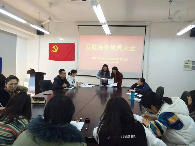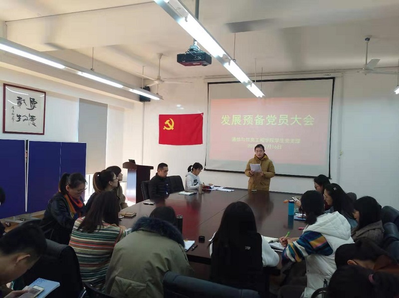 2019年12月16日,学生党支部在J313会议室召开发展预备党员大会,讨论审议吸收吴昊同志、朱天晓同志为中共预备党员的事宜。会议由支部书记王业平主持,支部全体党员参加了此次会议。