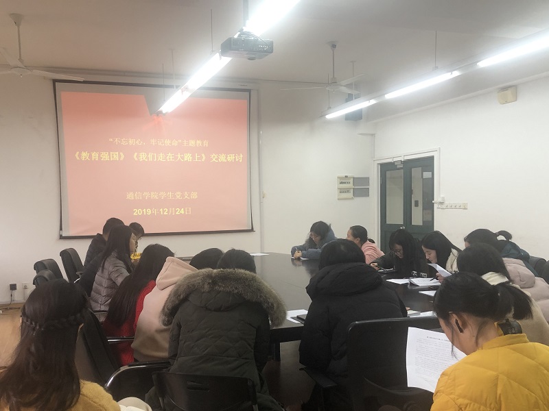 为继续推进“不忘初心,牢记使命”主题教育,学生党支部于2019年12月24日在奉贤校区J313召开支部会议,交流研讨《教育强国》《我们走在大路上》心得体会。
