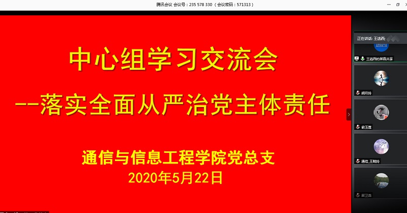 2020年3月9日,中共中央办公厅发布了《党委(党组)落实全面从严治党主体责任规定》(以下简称《规定》)。为传达中央关于全面从严治党的最新要求,强化党员干部纪律性,维护良好政治生态,永葆党的先进性和纯洁性,5月22日下午,我院党总支组织中心组成员线上集中学习《规定》。党总支书记陈林河主持会议并进行领学。