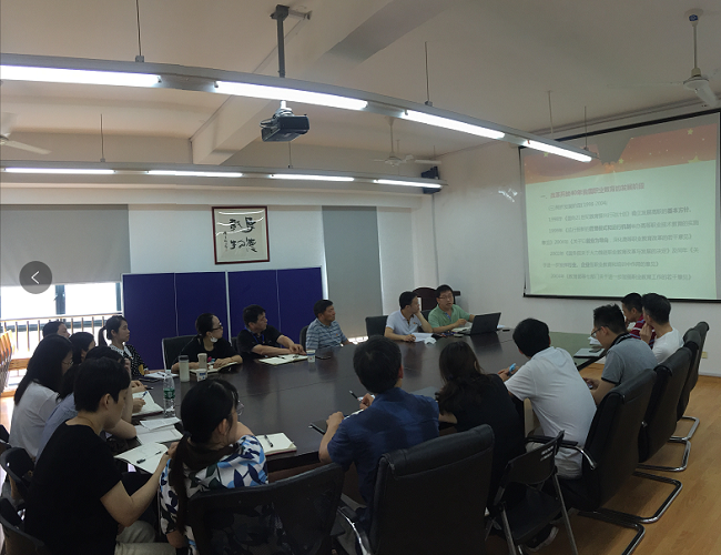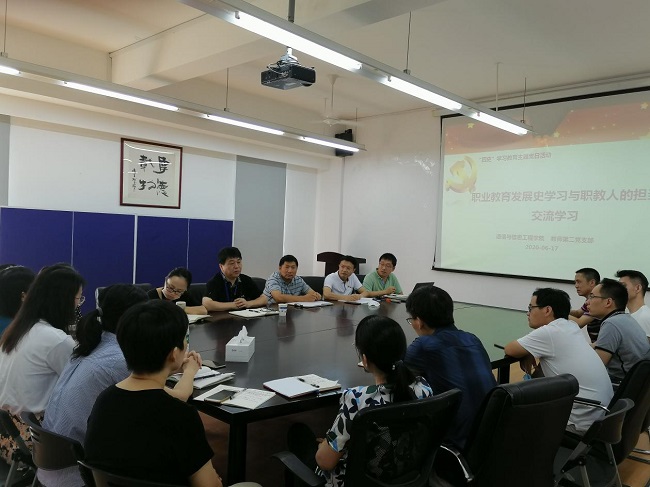 2020年6月17日中午,我院教师第二党支部在J313会议室开展“四史”学习教育主题党日活动,主题为“职业教育发展史学习与职教人的担当”。学校党委书记田钦到会指导,组织部杨烨萍老师陪同与会,教师第一支部全体党员参会。党支部书记朱冰主持并领学。