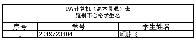 197计算机1班(高本贯通)甄别不合格学生名单