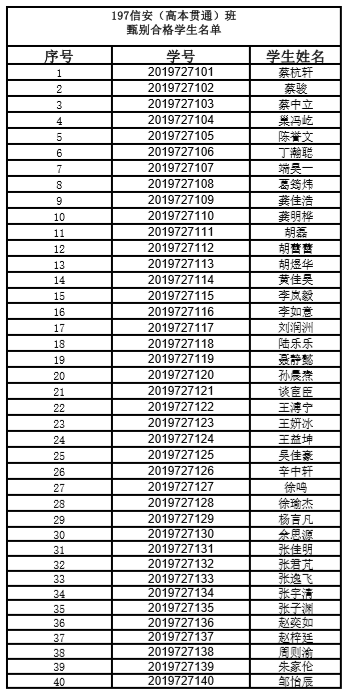 附表:197信安1班(高本贯通)甄别合格学生名单