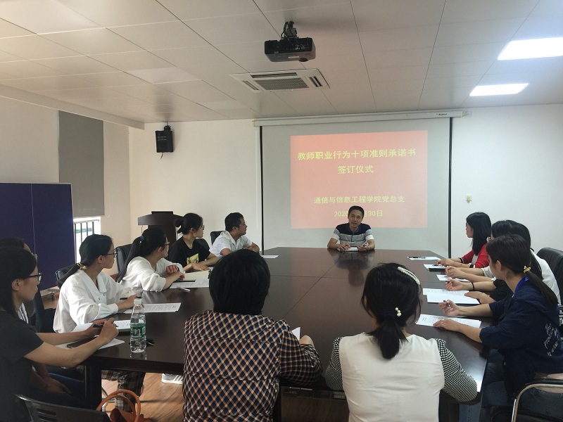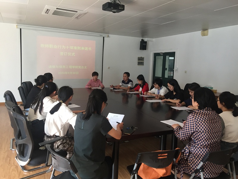 按照学校党委教师工作部2020年“牢铸师魂、厚植师爱”活动方案要求,9月30上午,我院在J313会议室组织新教师开展职业行为十项准则承诺书签订仪式。党总支书记陈林河及全体新入职教师参加仪式,党总支办公室胡月玲老师主持仪式。