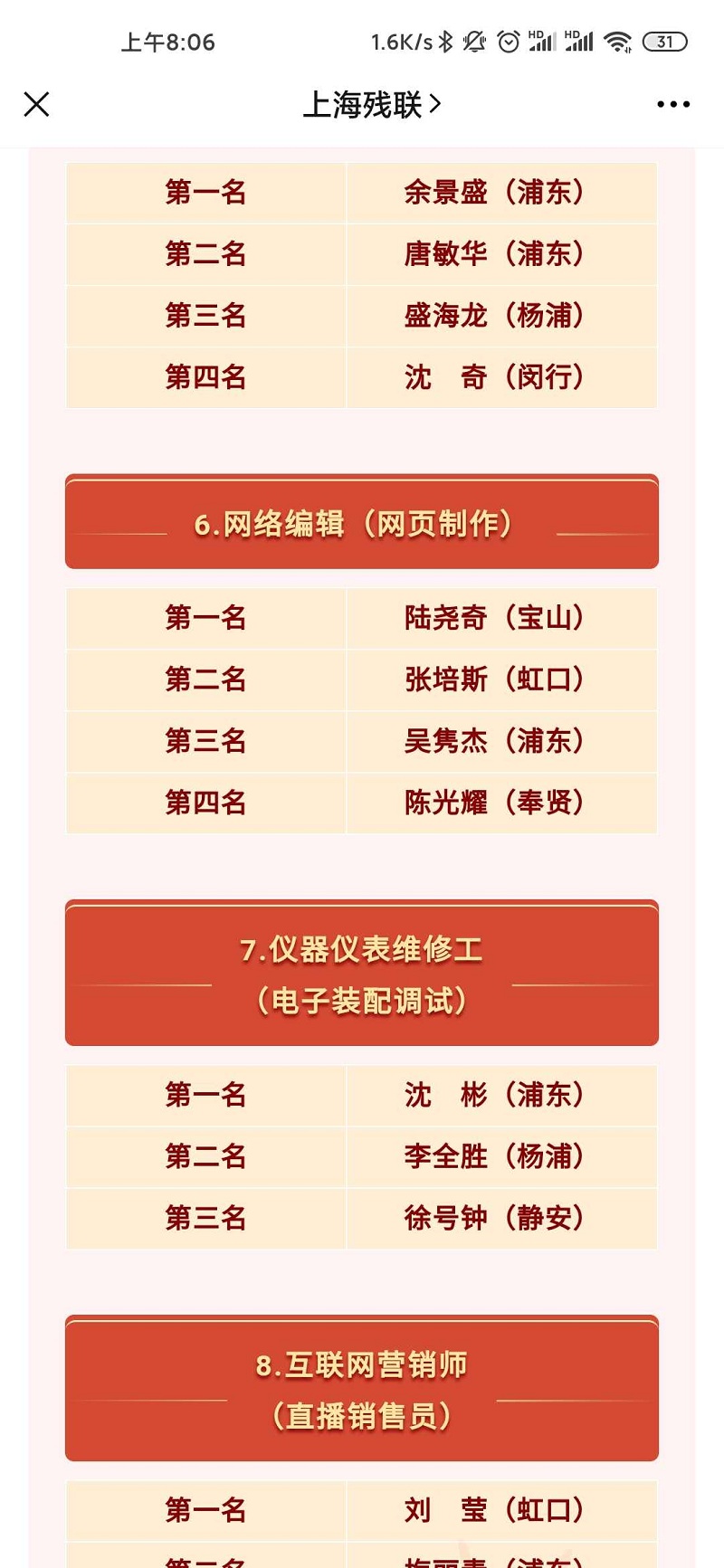 本次竞赛设全国精英赛选拔项目和上海市精选项目,机械加工数控编程、3D打印、网页制作、数据处理、电子装配调试、美容、服装配饰设计、直播互联网营销8个竞赛项目,涵盖先进制造、信息技术、服务和手工制作等多个行业。这些竞赛项目与上海的产业发展和转型紧密相关,也是引领残疾人就业的新方向。希望通过以赛促训,引领残疾人以高技能实现高层次就业,用技能创造美好的生活。