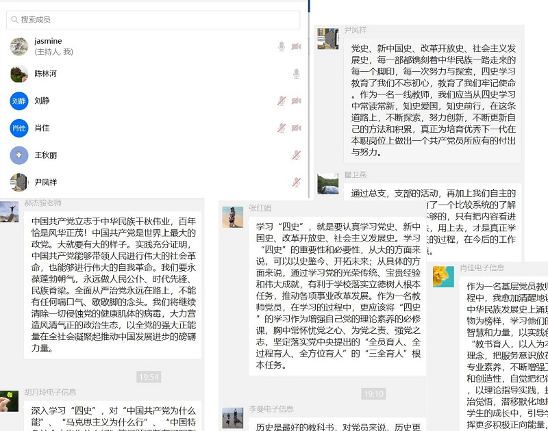 2020年10月13日,教师第一党支部通过线上会议的形式,学习了“四史”中社会主义发展史的部分,同时结合学习了《习近平谈治国理政》第三卷中“谱写新时代社会主义新篇章”部分的内容。支部书记李莉给大家讲解了新中国社会主义发展史,从十月革命到新中国的建立,从新民主主义到社会主义的过渡,从改革开放到中国特色社会主义的提出,我们的社会主义事业在探索中发展、在挫折中前进、在困难中成长。然后,全体党员一起学习了《习近平谈治国理政》第三卷中《全面把握中国特色社会主义进入新时代的新要求》《全面贯彻新时代中国特色社会主义思想和基本方略》《新时代要有新气象,更要有新作为》《继续进行具有许多新的历史特点的伟大斗争》四个文件内容,习总书记提出要不断提高新时代坚持和发展中国特色社会主义的能力,把党的科学理论转化为万众一心推动实现“两个一百年”奋斗目标、实现中华民族伟大复兴中国梦的强大力量。