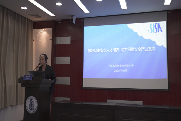 上海信息安全行业协会副秘书长朱方园从行业协会的角度,做了题为“做好网络安全人才培养,助力网络安全产业发展”的报告,她明确行业协会将利用协会的社会资源,协调相关网络安全企业与院校进行合作,助推校企之间的产教融合。