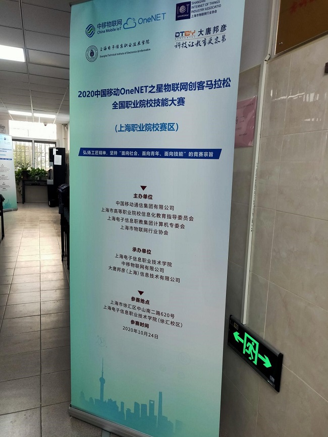 “2020 中国移动 OneNET 之星物联网创客马拉松全国职业院校技能大赛(上海职业院校赛区)”于2020年10月24日在上海电子信息职业技术学院徐汇校区举行。此次比赛由中国移动通信集团有限公司、上海市高等职业院校信息化教育指导委员会、上海电子信息职教集团计算机专委会、上海市物联网行业协会主办,上海电子信息职业技术学院、中移物联网有限公司、大唐邦彦(上海)信息技术有限公司承办。旨在搭建物联网科技创新成果展示和交流平台,促进院校物联网教育方法的交流和教学质量的提升,培育和推广基于物联网应用的创新型科研成果,推动 5G 及物联网产业人才培养与行业发展。