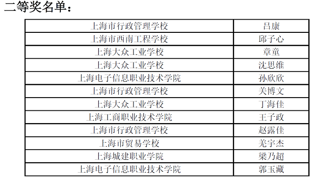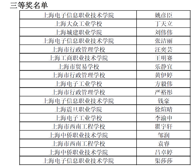 上海电子信息职业技术学院获得团体特等奖、3项个人一等奖、2项个人二等奖、4项个人三等奖。