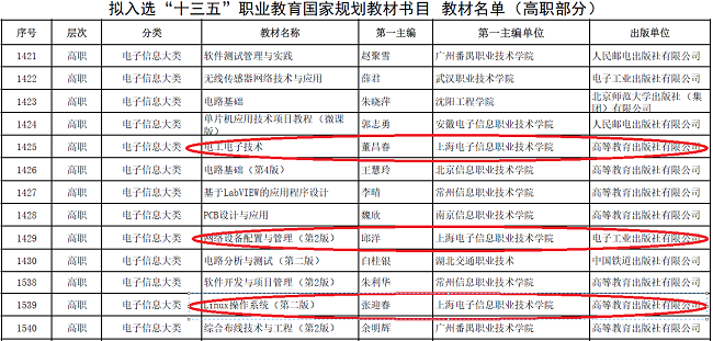 根据教育部网站的“关于拟入选‘十三五’职业教育国家规划教材书目教材名单的公示”文件,我院教师张迎春主编的《Linux操作系统(第二版)》、邱洋主编的《网络设备配置与管理(第2版)》、董昌春主编的《电工电子技术》三本教材入选“十三五”职业教育国家规划教材。