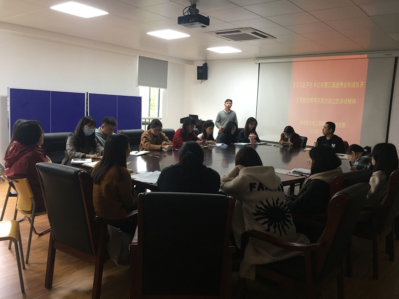 2020年11月25日,我院学生党支部组织全体党员在J313会议室集中学习了习近平总书记在第三届进博会和浦东开发开放30周年庆祝大会上的讲话精神,并在学习的基础上进行了交流发言。