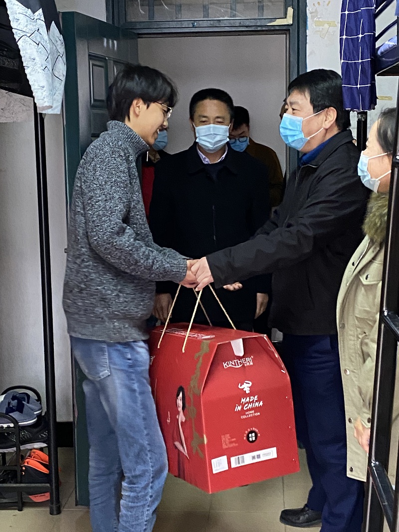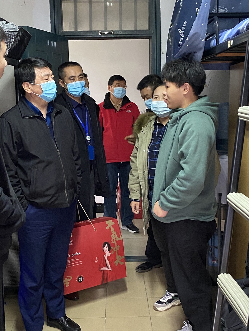 献一份爱心,温暖冰冷寒冬,送一丝温暖,心中阳光和煦。在走访活动中,校党委书记田钦,党委办公室副主任李涛,后勤保障处处长单贵、副处长程利康,学生处邬晓斌,学院党总支书记陈林河、副书记副院长姜涛,生活园区卫晓雷,学院学管办主任张梅,辅导员胡婷等人先后来到生活园区10号楼罗忠山等学生宿舍,为学生送上殷殷祝福和冬季棉被,同时对学生的学习、生活及园区建设等问题与同学们进行了深入交流。
