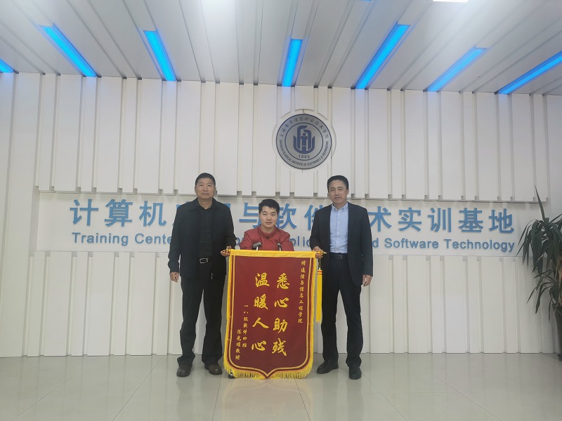 心怀感恩,大爱通信,回报社会,与爱同行。2020年11月16日,光耀同学在母亲的陪同下来到通信与信息工程学院,他用一面锦旗,用一份行动来表达对通信学院全体师生的感恩和谢意。一面锦旗虽然很轻,但背后是大家对光耀同学在经济、精神、学业、生活等方方面面沉甸甸的关爱和呵护。一面锦旗虽然很微小,但却凝聚了光耀同学感恩学校回报社会的伟大精神。