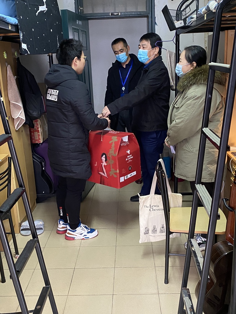 献一份爱心,温暖冰冷寒冬,送一丝温暖,心中阳光和煦。在走访活动中,校党委书记田钦,党委办公室副主任李涛,后勤保障处处长单贵、副处长程利康,学生处邬晓斌,学院党总支书记陈林河、副书记副院长姜涛,生活园区卫晓雷,学院学管办主任张梅,辅导员胡婷等人先后来到生活园区10号楼罗忠山等学生宿舍,为学生送上殷殷祝福和冬季棉被,同时对学生的学习、生活及园区建设等问题与同学们进行了深入交流。