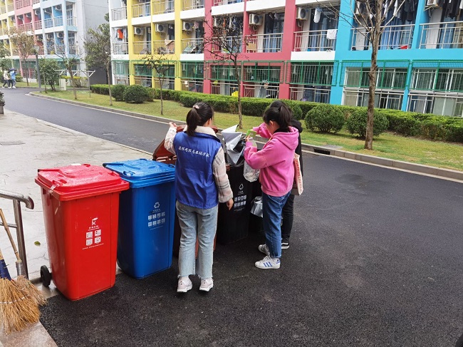 我院团总支通过第二课堂平台积极招募到近300名垃圾分类志愿者和宣传员,通过悬挂宣传横幅、发放宣传单页,流动“小喇叭”循环播放垃圾分类小常识,营造垃圾分类“三维立体”宣传氛围。进行垃圾分类宣讲,详细介绍垃圾分类的标志及分类投放的必要性,开展垃圾分类知识竞赛,表演垃圾分类情景剧,现场示范分类投放生活垃圾,提升垃圾分类的趣味性。同时,我院前后共计80个行政班级相继开展了“做好垃圾分类、共建绿色校园”主题班会,通过多种“花样”形式,充分调动同学们共同参与垃圾分类,共创文明校园的积极性。