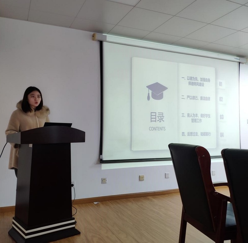 会上,大家围绕“德”、“职”、“廉”以及“存在问题和努力方向”等几个方面对一年来的工作开展、成效及特色等进行系统总结汇报,同时反思工作中存在的问题与不足,并提出下一年的努力方向,充分展现辅导员对自身工作的认同感、责任感。