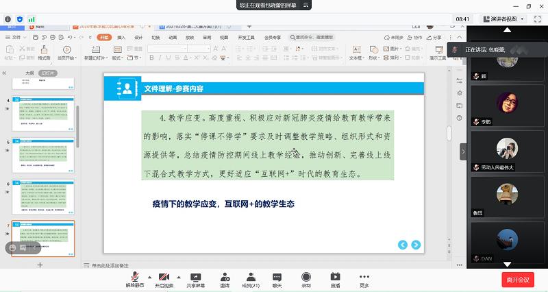 为积极总结和推广参赛经验,3月12日,我院通过腾讯会议组织举办了“2020年上海市高等职业院校教师教学能力大赛经验分享交流会”。由我院2020年上海市高等职业院校教师教学能力大赛一等奖获得团队的包晓蕾老师为学院教师分享经验。