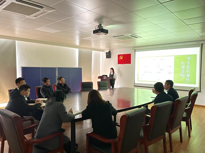 我院党总支书记陈林河对学校领导莅临指导表示热烈欢迎。“心悦坊”工作站负责人季华瑛详细汇报了“心悦坊”二级心理工作站的整体情况、日常工作开展以及发展规划,详细介绍了工作站已经开展的各项心理健康教育活动,以及对大学生心理危机干预等方面的工作思考。